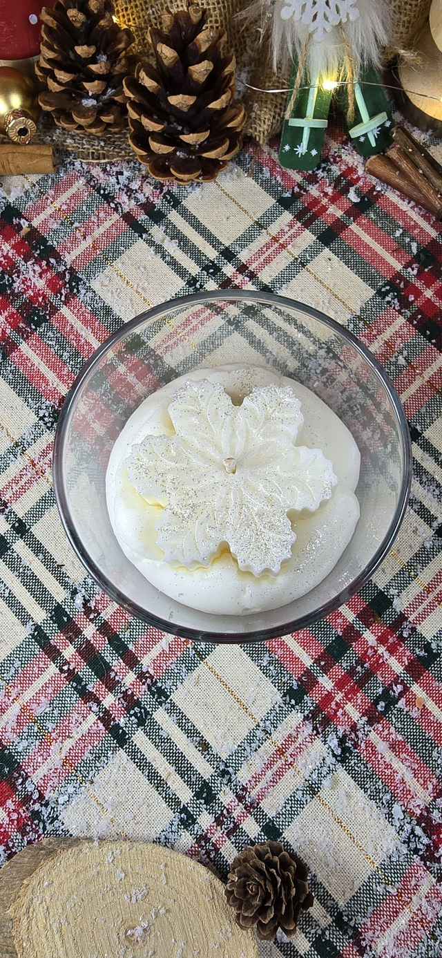Un flocon délicatement sculpté, une chantilly crémeuse et scintillante… la magie de l’hiver prend vie dans cette bougie d’une douceur infinie 🤍