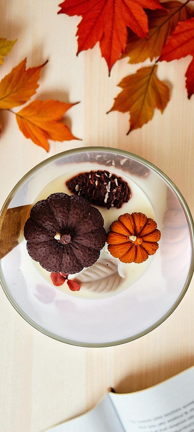 Un parfum boisé et apaisant, pour une ambiance chic et réconfortante. Coulée à la main dans son contenant en verre, cette bougie se pare de citrouilles sculptées qui évoquent la chaleur des soirées d’automne.