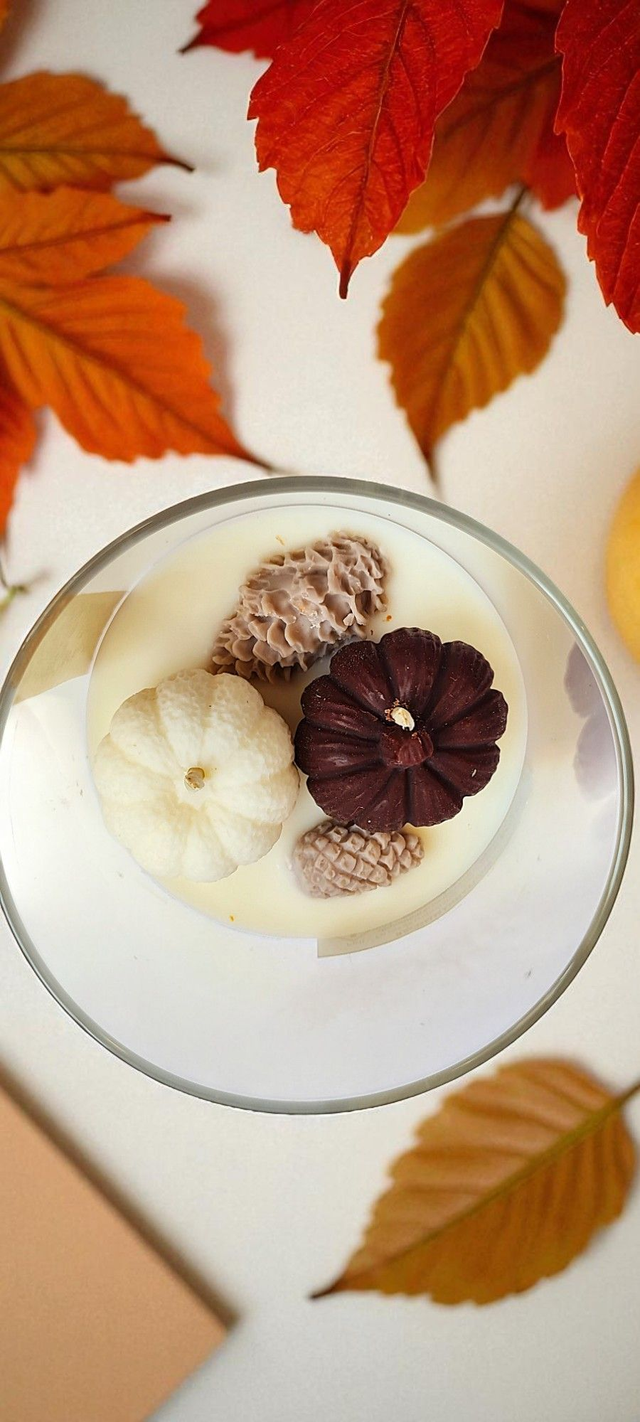 Une senteur profonde et enveloppante, qui rappelle la noblesse de l’olivier. Sa cire végétale accueille des décorations inspirées de la nature : citrouilles, pommes de pin ou feuilles, pour un charme rustique et raffiné.
