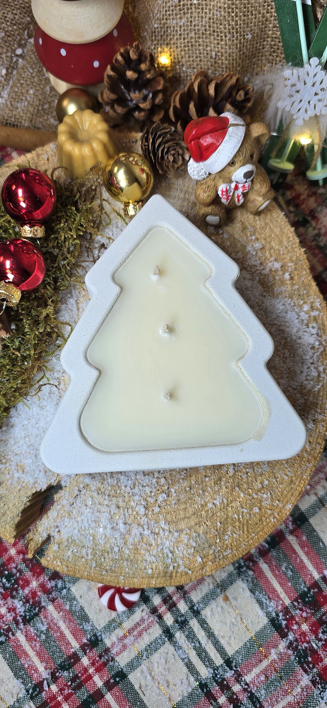 Plongez dans la magie de Noël avec cette bougie artisanale coulée à la main dans un contenant en alliage minéral, au design de sapin élégant et naturel.