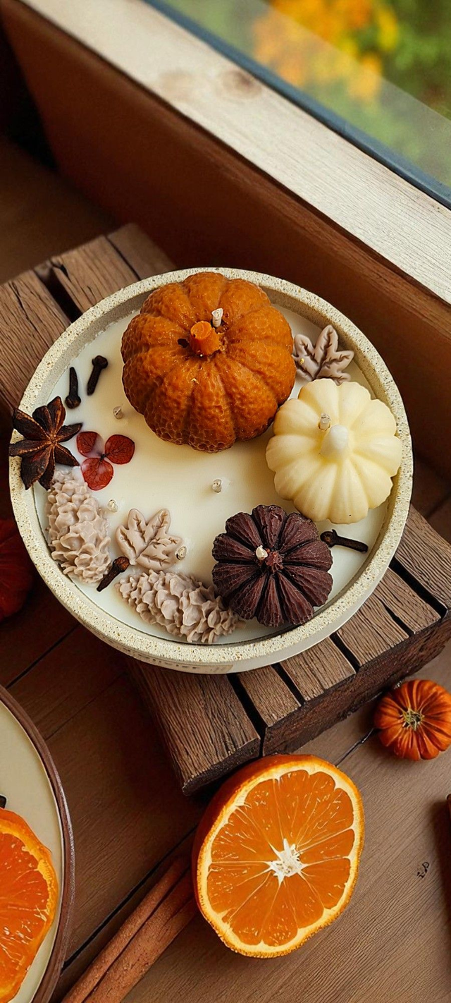 Les citrouilles sculptĂ©es en cire, les pommes de pin et feuilles parfumĂ©es se mĂȘlent pour crĂ©er une ambiance chaleureuse et Ă©lĂ©gante.