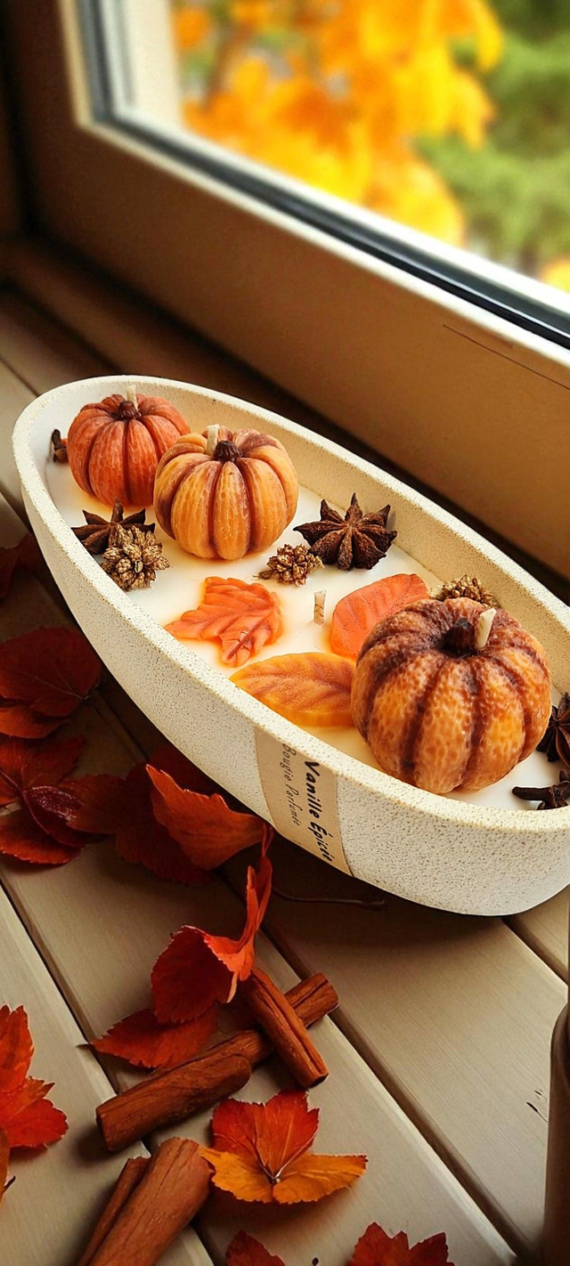 Un parfum d’automne où la douceur gourmande de la vanille se marie à la chaleur des épices. Coulée à la main en cire végétale, cette bougie décorative est présentée dans un contenant artisanal moulé en mélange minéral naturel, avec ses citrouilles et feuillages en cire qui la rendent unique.